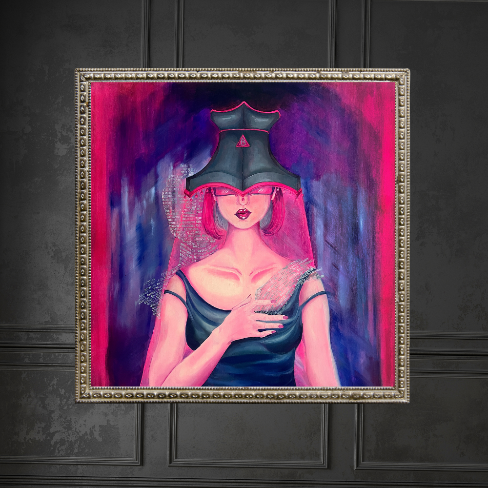 Inspired by technology, symbolism, and hidden messages (although no AI was involved at any part of the creative process), the work Love and Machines represents the increasingly complex nature of the relationships between the self and others as technology continues to evolve.
